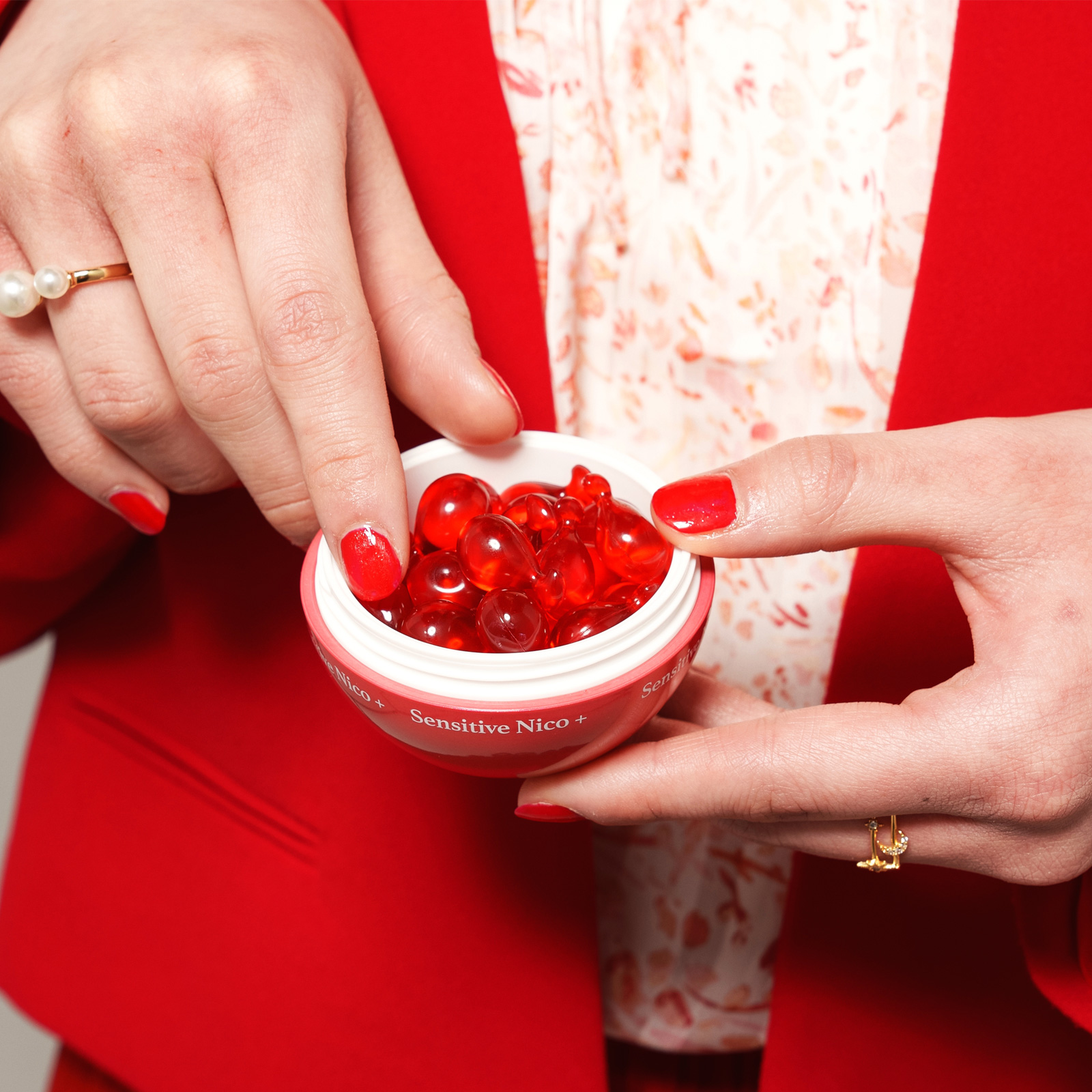 • Пробиотические лактобактерии и ингредиенты для поддержки микробиоты в сочетании с витаминами C, B, E, H и K, фолиевой кислотой, аминокислотами, кальцием, минералами и цинком, гранатом, омега-3, компонентами для митохондрий, триптофаном и железом поддерживают барьерную функцию, стимулируют клеточную регенерацию и защищают кожу от окислительного стресса.